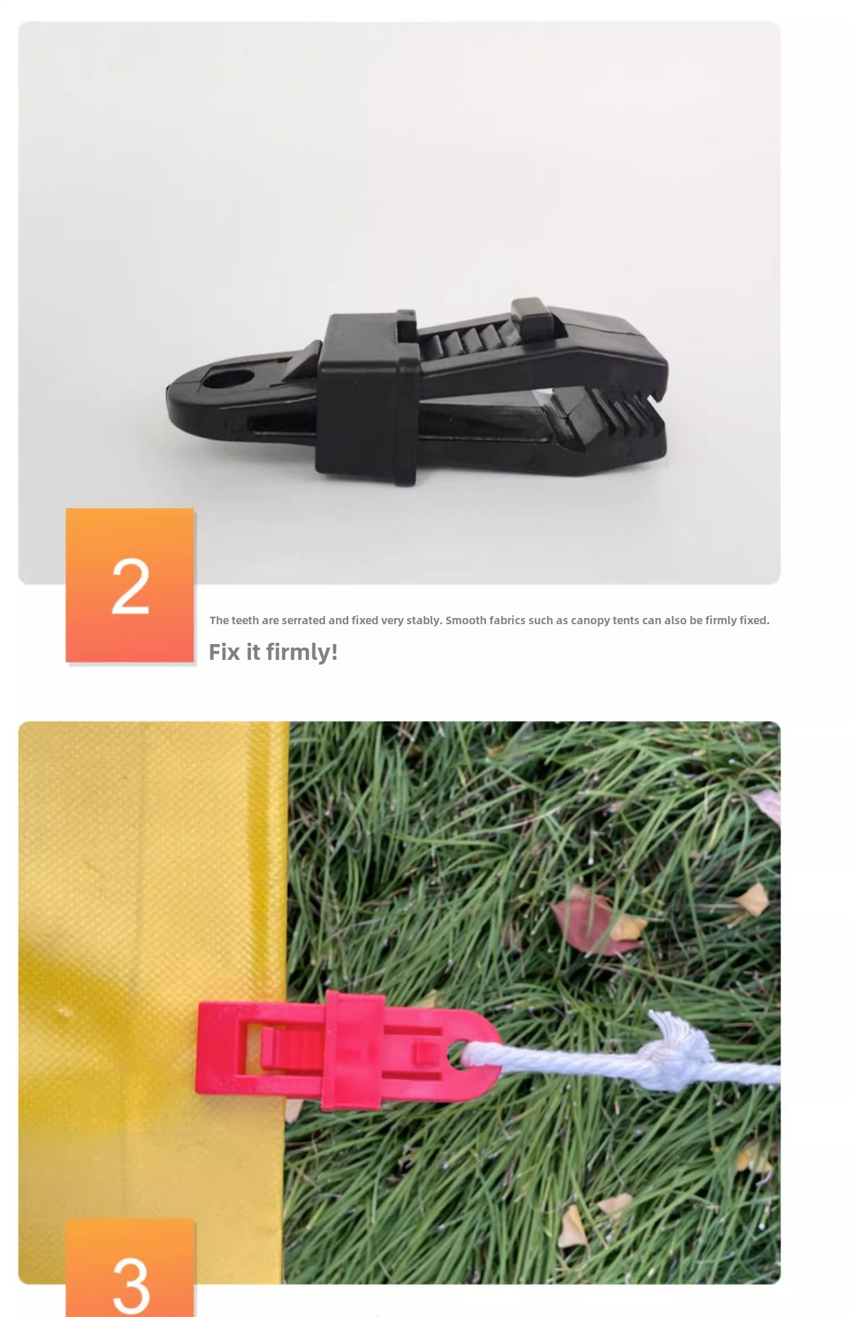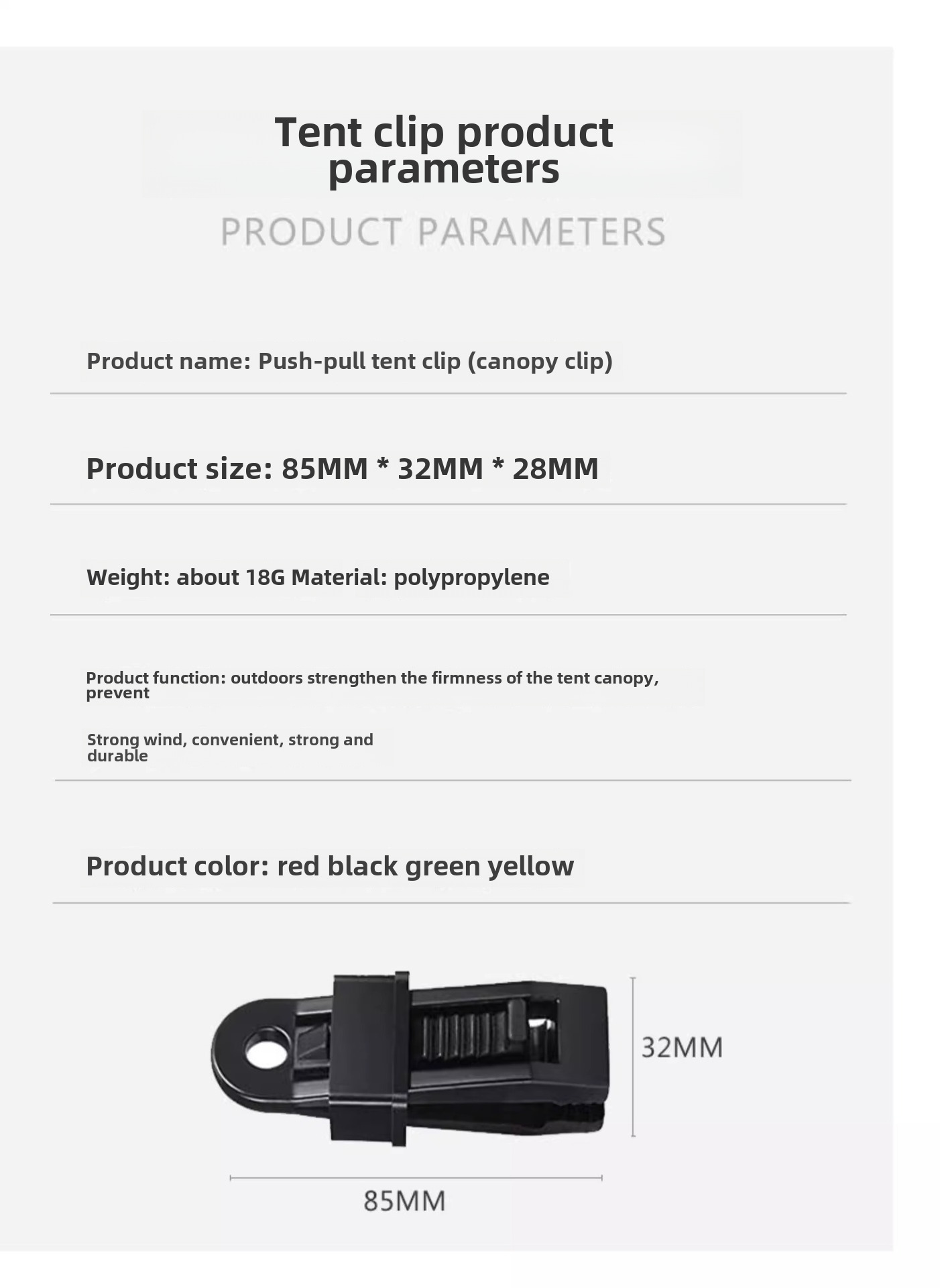 - Easy to Use:The clip is easy to attach to any fabric material, making it simple to secure your tent or sunshade in strong winds.